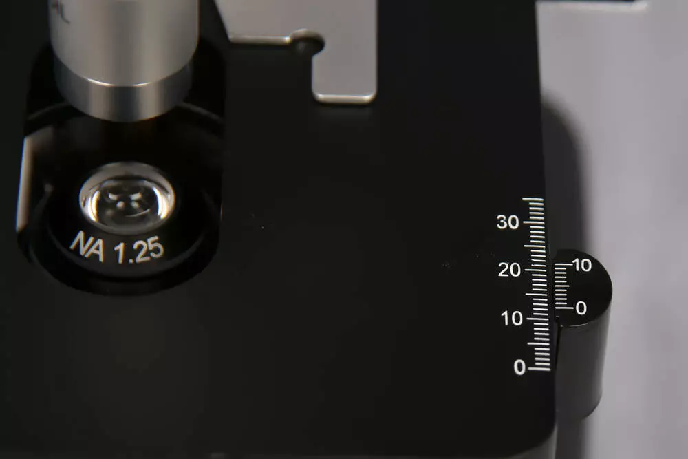 Оснащений першокласною оптикою з якісного оптичного скла зі спеціальним покриттям, що має функції антивідблискування, кольорокорекції, протигрибкові властивості, а також вбудованою регульованою системою освітлення.