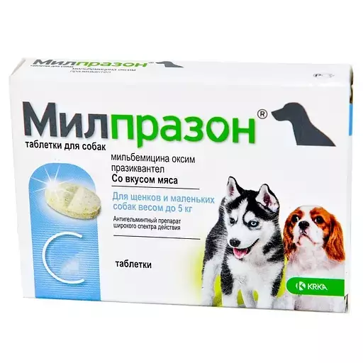 Мілпразон від глистів для цуценят та собак вагою до 5 кг, 2таб милпразон для собак