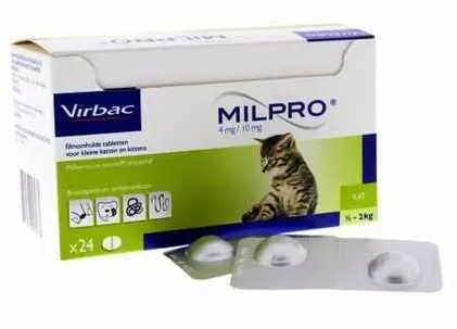 Мілпро для котів в якості діючих речовин містить мільбеміціна оксим і празиквантел. Випускають препарат в двох модифікаціях: Мілпро кет для кошенят з вмістом мільбеміціна оксима - 4 мг / табл, і празиквантела - 10 мг / табл. і Мілпро кет для котів з вмістом мільбеміціна оксима - 16 мг / табл, і празиквантела - 40 мг / табл.