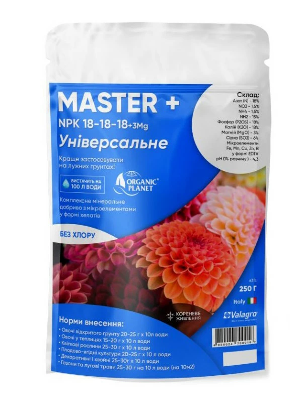 Мінеральне добриво «Майстер» (Master) NPK 18-18-18, 250 г