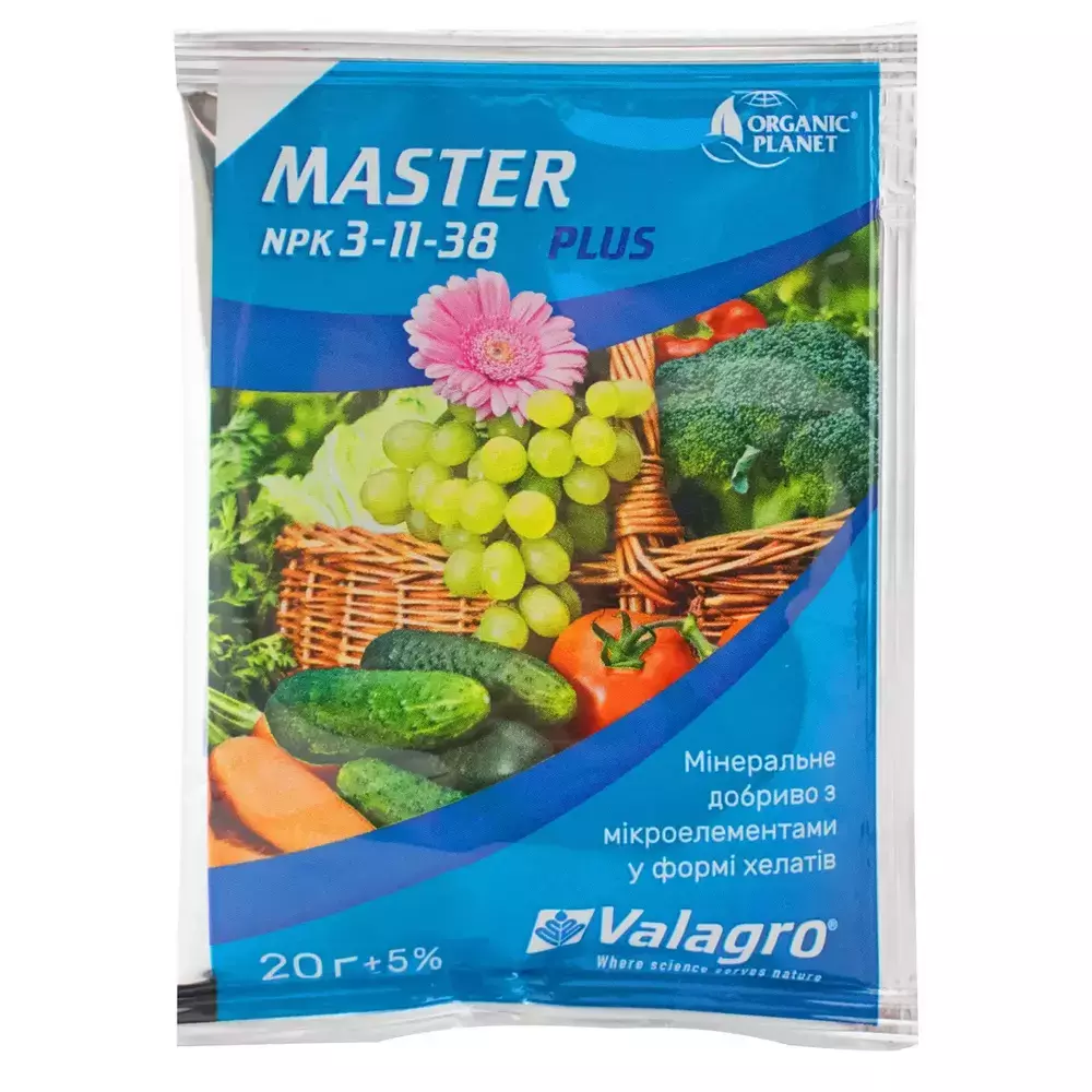 Master plus NPK 3.11.38 інструкція, спосіб застосування та норма витрати підживлення 20 г