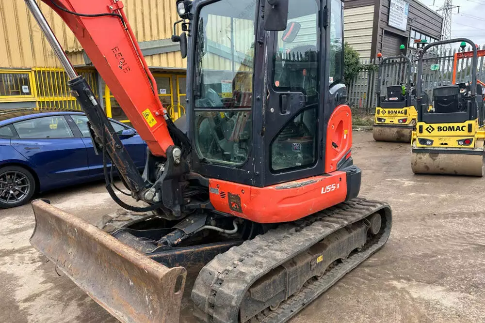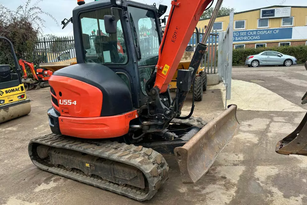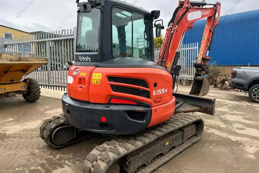 Міні екскаватор б/в Kubota U55-4, 2019 р/в, з напрацюванням 2717 м/год. Потужність двигуна – кВт. Загальна висота — 2,55 м. Розмір гусениці: R 400х72,5х74. Стріла — Standart. Швидкоз'єм ковша. Ківш планувальний – 1,5 м. Ківш – 0,9 м; 0,6 м; 0,3 м. Кабіна, робоче освітлення. Глибина копання — 3,63 м.