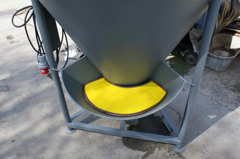 Міні комбікормовий завод включає в себе системи подрібнення та змішування інгредієнтів. Інгредієнти завантажуються автоматично в дробарку через труби з повітряним потоком.