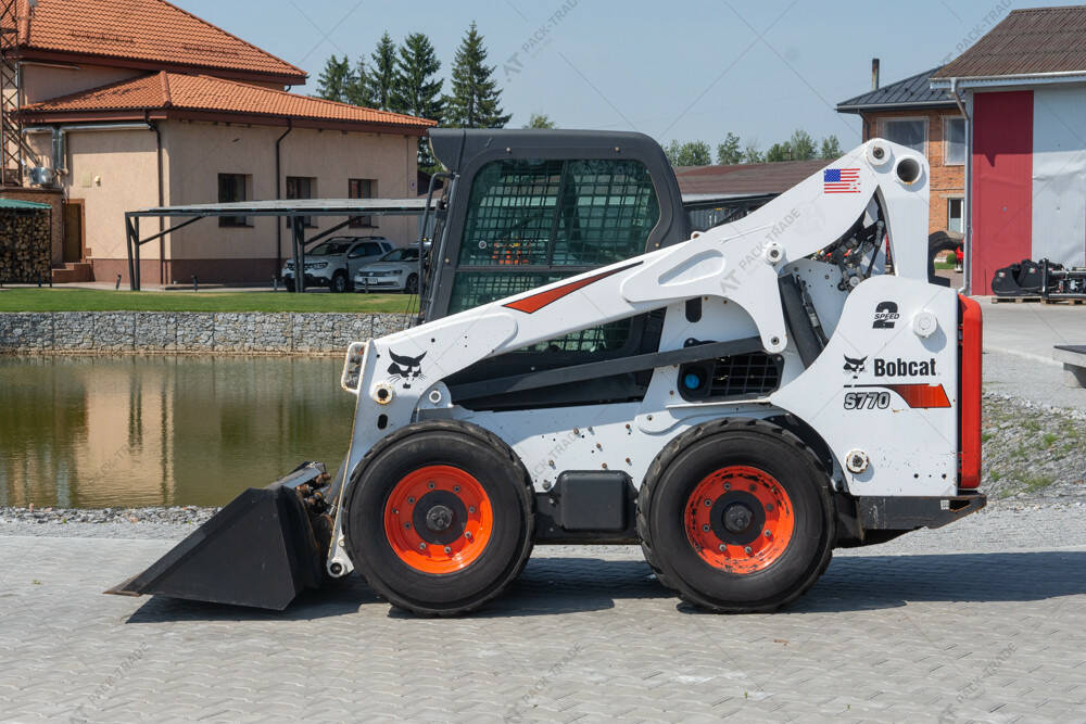 Міні навантажувач б/в Bobcat S770, 2020 р/в, з напрацюванням 3416 м/г. Потужність двигуна – 68.7 кВт. Вантажопідйомність – 1569 кг. Розмір колес: 12-16,5. Ричаги, 2 швидкості, гідравлічний швидкоз’єм. HIGH FLOW, Кабіна з обігрівачем, кондиціонер, радіо, робоче освітлення, сигнал заднього ходу.