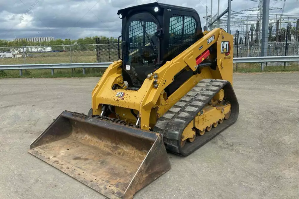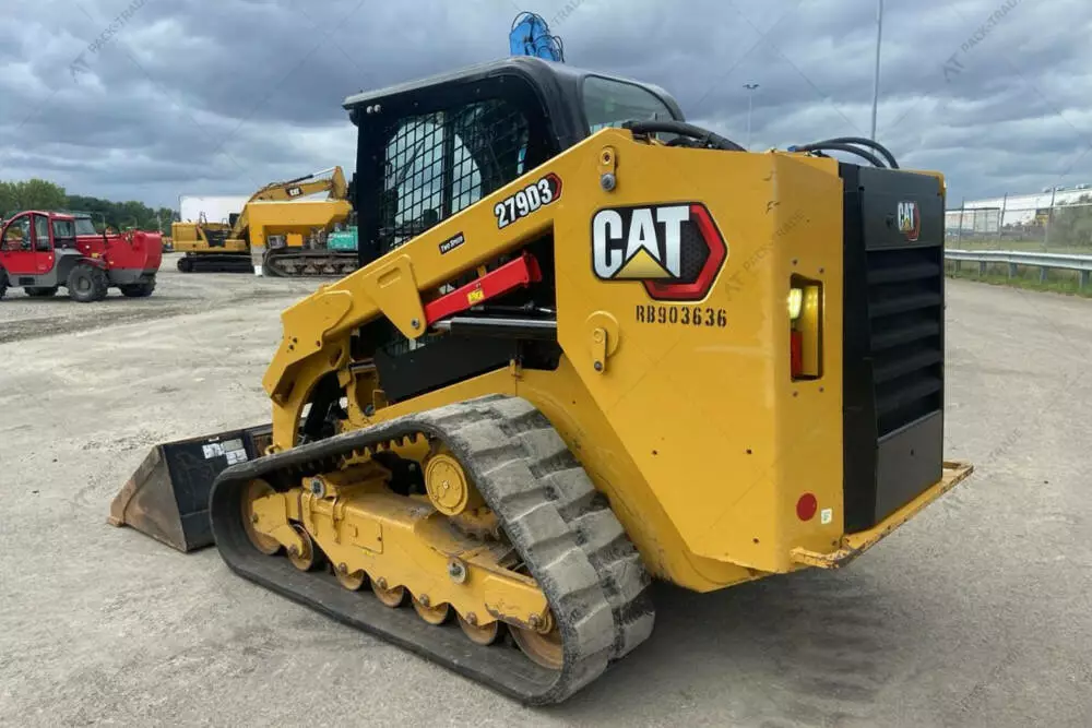Міні навантажувач б/в Caterpillar 279D3, 2021 р/в, з напрацюванням 1488 м/г. Потужність двигуна – 55,4 кВт. Вантажопідйомність – 1010 кг. Розмір гусениці – 450х86BAx56. Джойстики, 2 швидкості, High Flow, позиціювання ковша, гідравлічний швидкоз'єм, Кабіна з обігрівачем, кондиціонер, магнітола, камера заднього огляду, робоче освітлення.