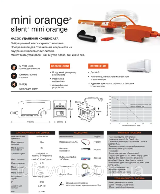 Компактный насос MINI ORANGE отлично подходит для кондиционеров небольшого и среднего размера.