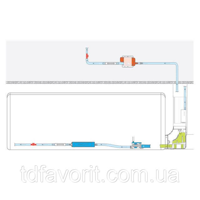 Для внутреннего монтажа, cнабжен доп. секцией для снижения уровня шума, питание 230 В АС, 16 Вт, макс. производительность до 12 л/час (при отсутствии подъема, см. диаграмму), макс. подъем до 10 м, 19 дБ(А) @ 1м, размер насосной группы - 51х116х39 мм, , бачка - 80х39х34(h) мм. С дополнительным контактом для откл. кондиционера при превышении аварийного уровня в бачке. Антисифонное устройство в комплекте.