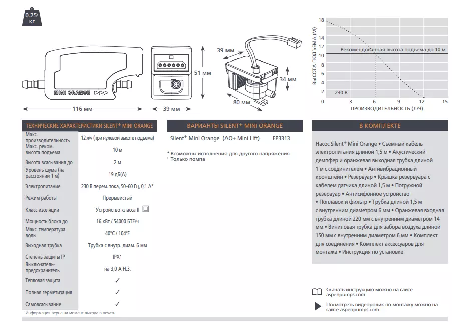 Mini Orange SILENT насос удаления конденсата Aspen Pumps