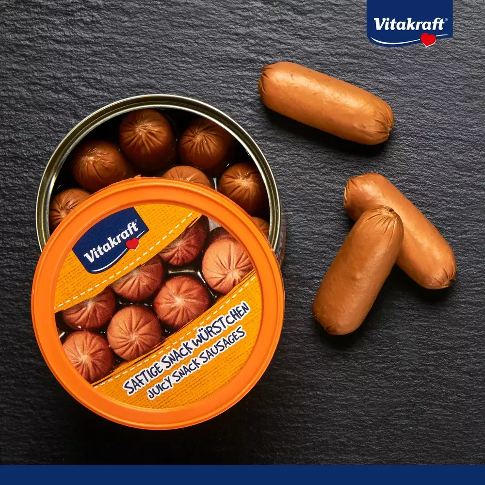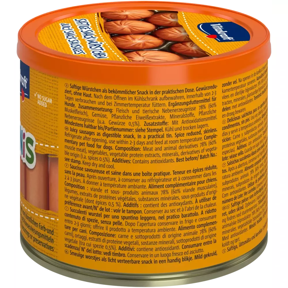 Смачні ковбаски у практичній бляшаній упаковці спеціально розроблені для собак.
