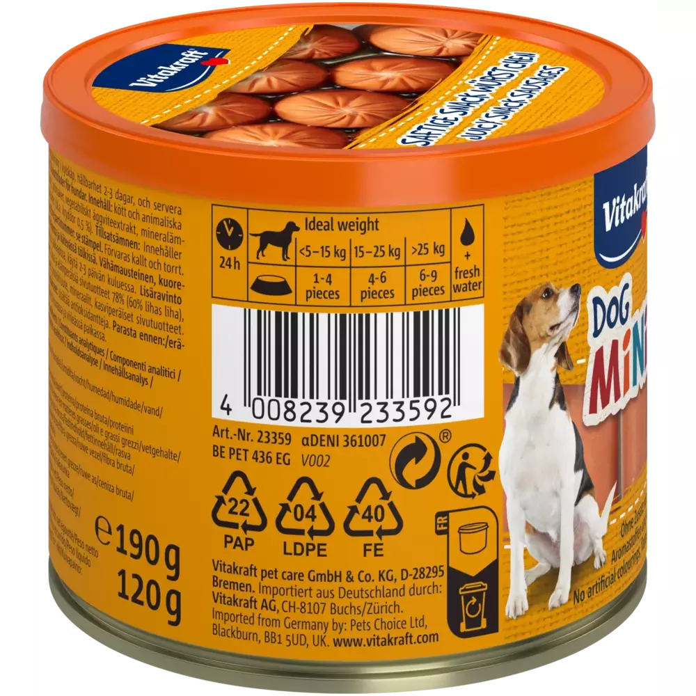 Міні сосиски без оболонки для собак Вітакрафт Vitakraft Dog Minis беззернові ласощі для всіх порід собак, 120 г (12 шт)