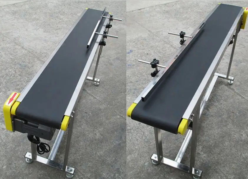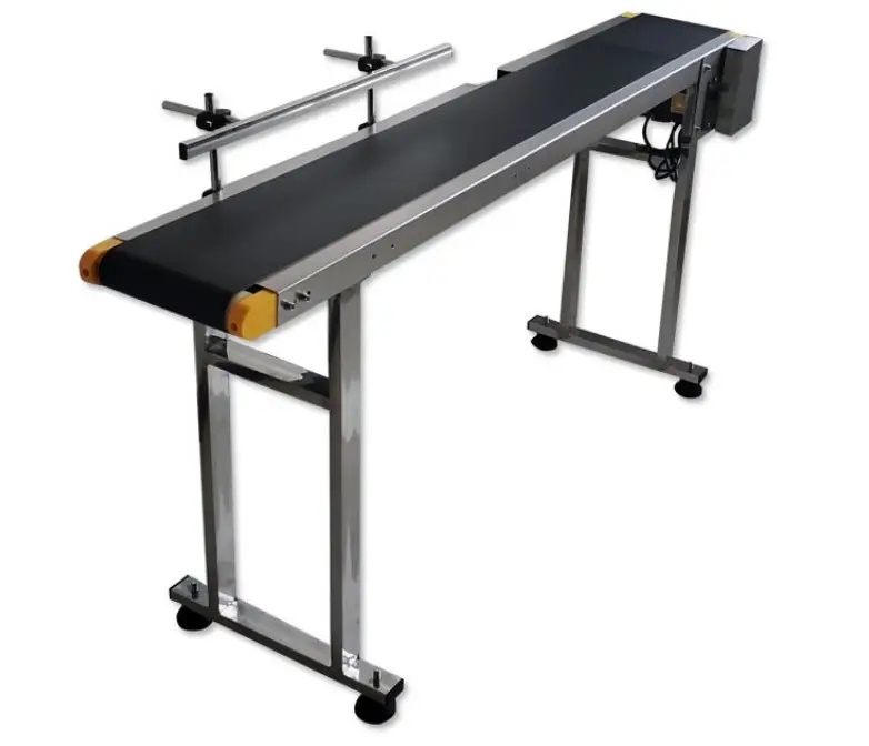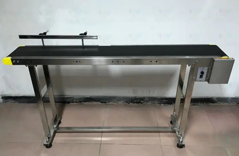 Установка виконана у вигляді автономного обладнання для полегшення праці оператора. Даний конвеєр використовується на малих виробництвах для синхронної роботи з маркувальниками (принтерами дати виробництва), етикетировочними машинами (виконує роль автоматичного завантажувача).