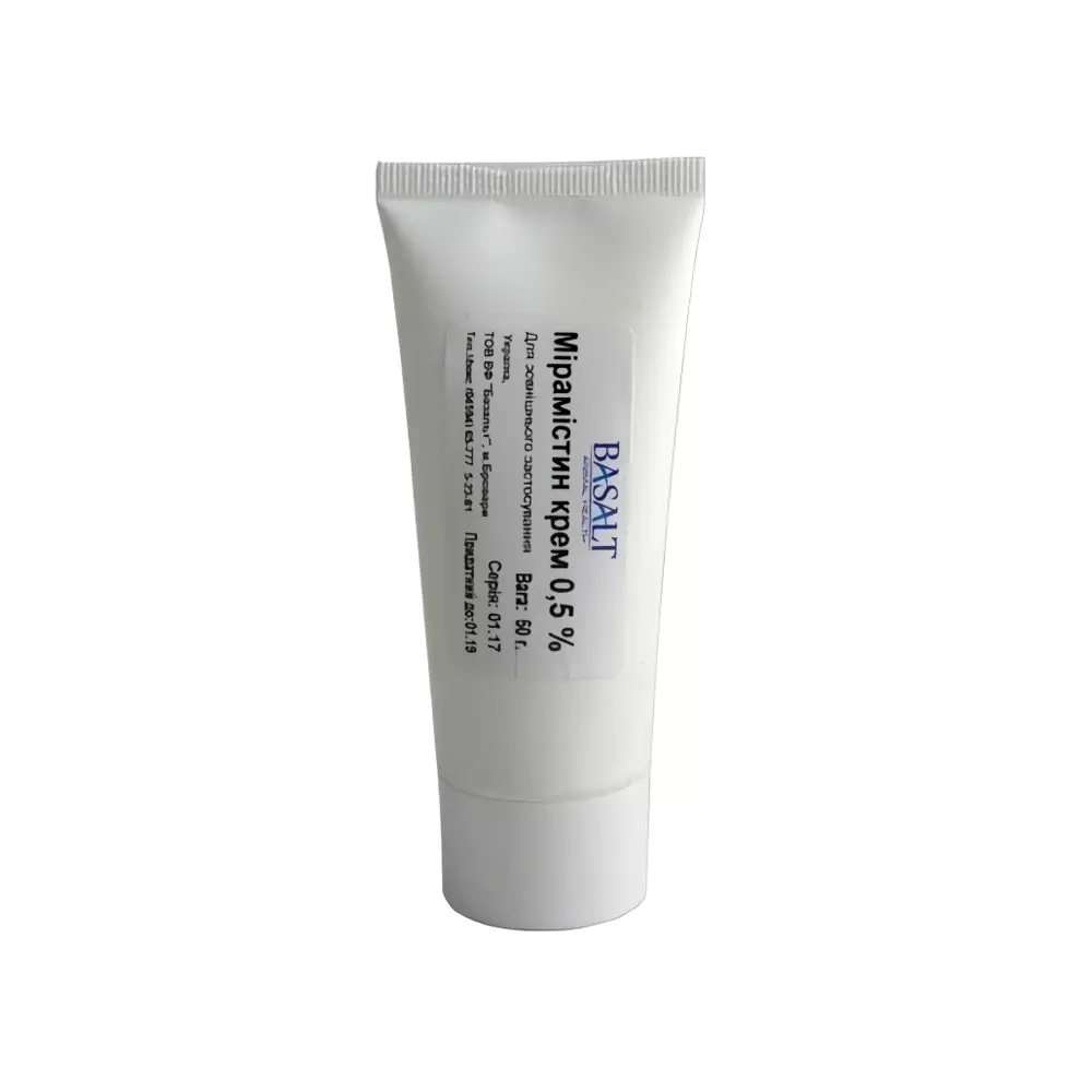 Мірамістин крем являє собою однорідну масу, від білого до бежевого кольору, зі слабким специфічним запахом.