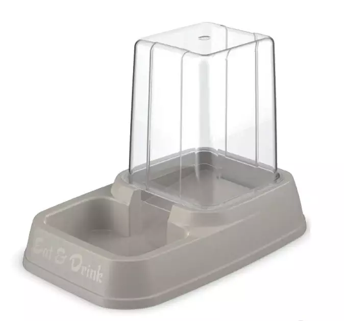 Миска автоматична, завдяки особливій конструкції диспенсера-сховища можна використовувати як напувалку або годівницю для кішок і собак. Прозора ємність для перевірки рівня вмісту. З антиковзним дном.