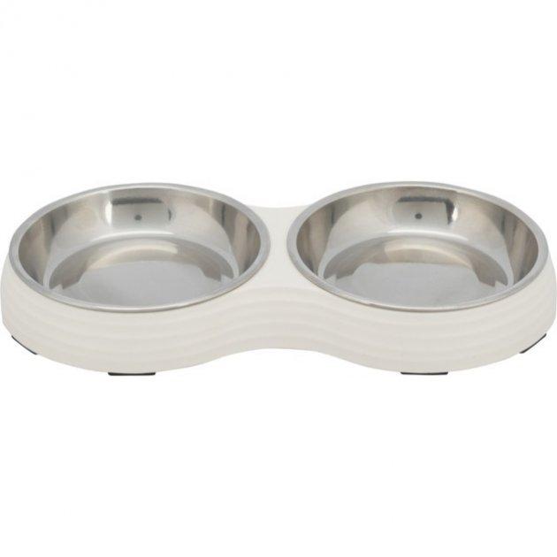 Миска металева подвійна для котів Trixie 0,2л / 13 см білий (TX-25187)