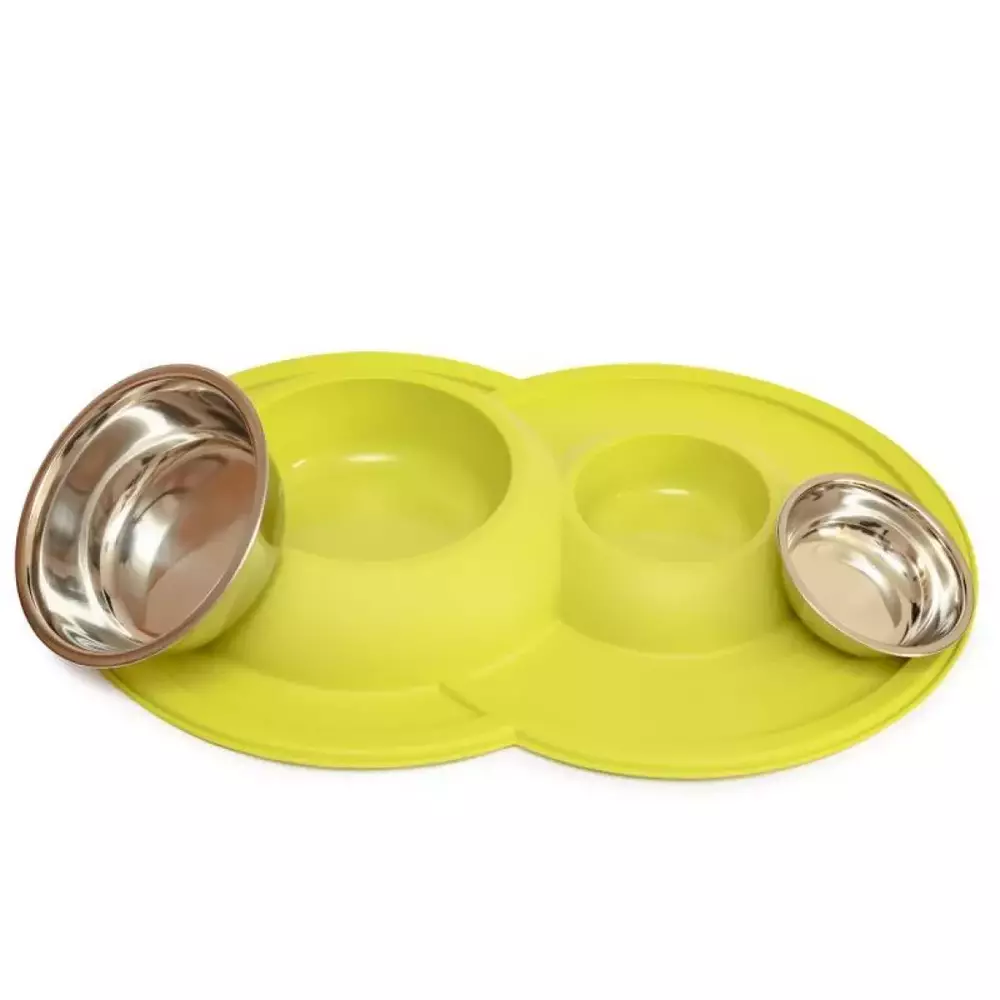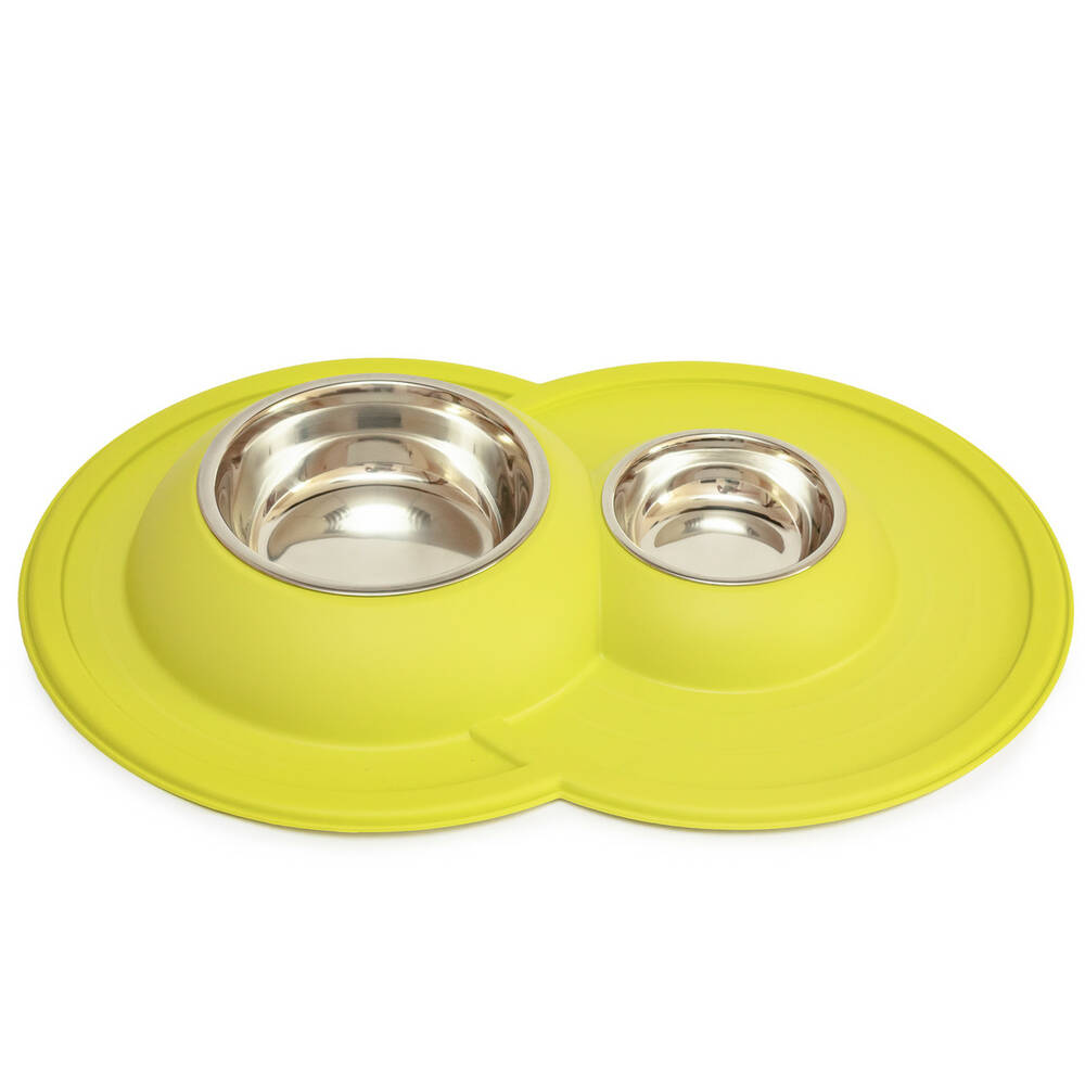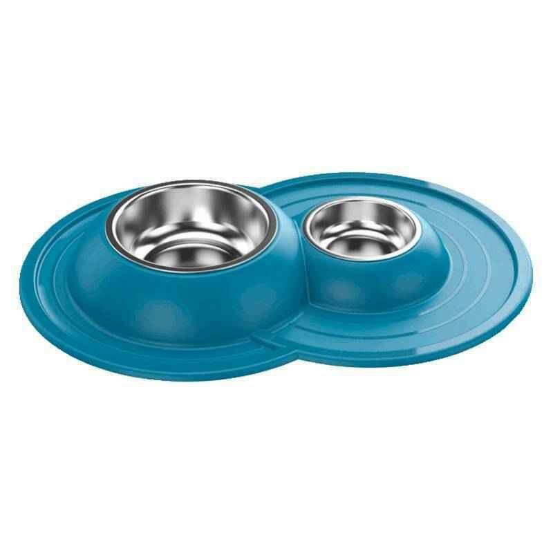Подвійні металеві миски Georplast Volcano Inox - ідеальне рішення для годування собак. Миски надійно тримаються на місці, завдяки м'якому силіконовому килимку, який також прекрасно запобігає ковзанню аксесуару під час їжі. Втішає також те, що килимок чудово захищає підлогу від розкиданого корму або пролитої води. З мисками Volcano Inox в будинку завжди буде чистота і радісна, сита тварина!