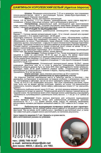 На пакеті наводиться докладна інструкція з вирощування. 10 г міцелію достатньо для приготування грядки площею 2-3 кв. м.