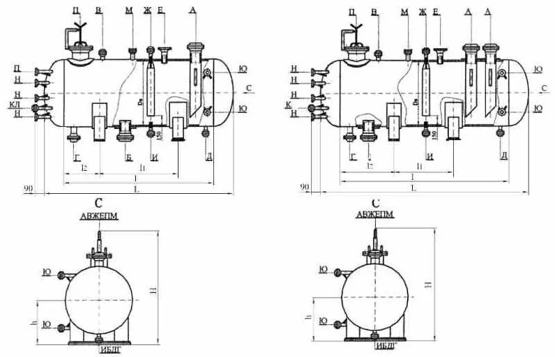 Призначені для тимчасового прийому рідкого холодоагенту (аміаку) з охолоджувальних пристроїв і апаратів холодильних установок
