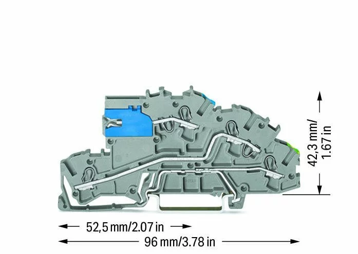 Багаторівневі клеми для монтажу на дінів рейку Wago 4 mm²; з ковзаючою перемичкою розмикання нейтралі; NT/L/PE; Push - in CAGE CLAMP®; 2,50 mm²; сірі.