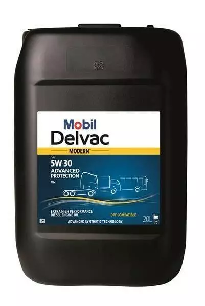 Mobil Delvac Modern 5W-30 Advanced Protection V6 – це покращена моторна олія з дуже високими експлуатаційними характеристиками, спеціально створена для підвищення економії палива та захисту сучасних високопотужних дизельних двигунів з низьким рівнем викидів, які застосовуються в автомобільній техніці, що працює у важких умовах. До складу цієї моторної олії входять синтетичні базові олії, одержувані за допомогою передових технологій, що сприяють плинності при низьких температурах, збереженню в'язкості при високих температурах, зниженню випаровування, а також потенційному підвищенню економії палива. Удосконалені присадки були розроблені для продовження терміну служби та збереження ефективності систем зменшення токсичності вихлопних газів, таких як дизельний фільтр сажі (DPF). Більшість виробників широко застосовують фільтри сажі для забезпечення дотримання вимог норм викидів, які пред'являються до сучасних вантажних автомобілів і автобусів.