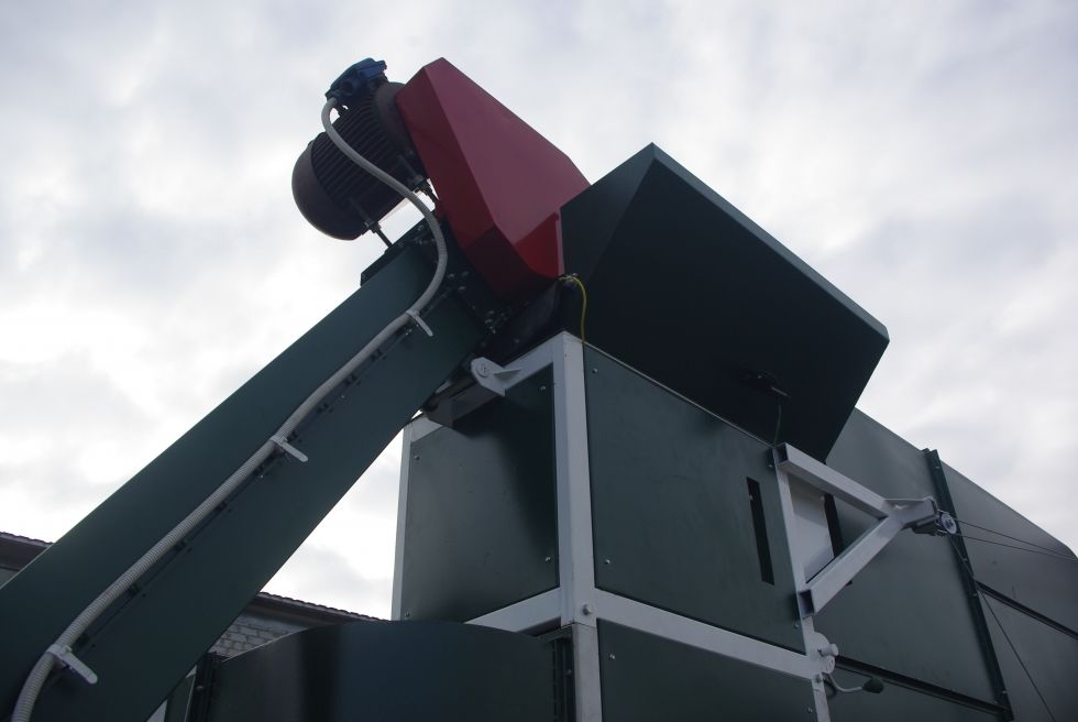 на виході з машини відкалібровані зерно можна подавати на будь-яку висоту до 4,3 метрів або буртовать з будь-якого боку від машини там, де потрібно. При буртовке регулювання висоти подачі зерна дозволяє вберегти зерно від травмування.