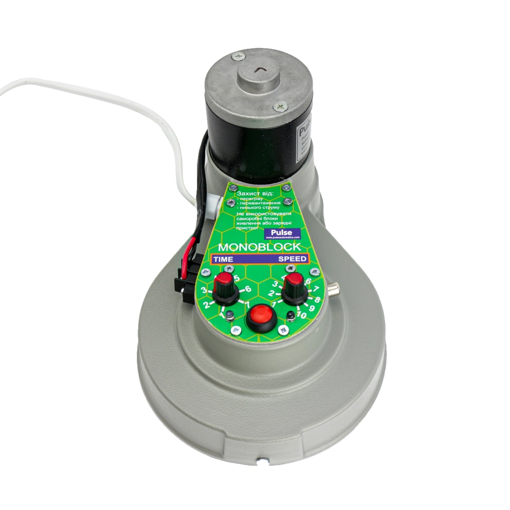 Електропривід для медогонки “А” Monoblock PULSE (100 Ватт) – призначений для редукторних медогонок, вихід вала з електроприводу, вниз через центральну планку в ротор медогонки.