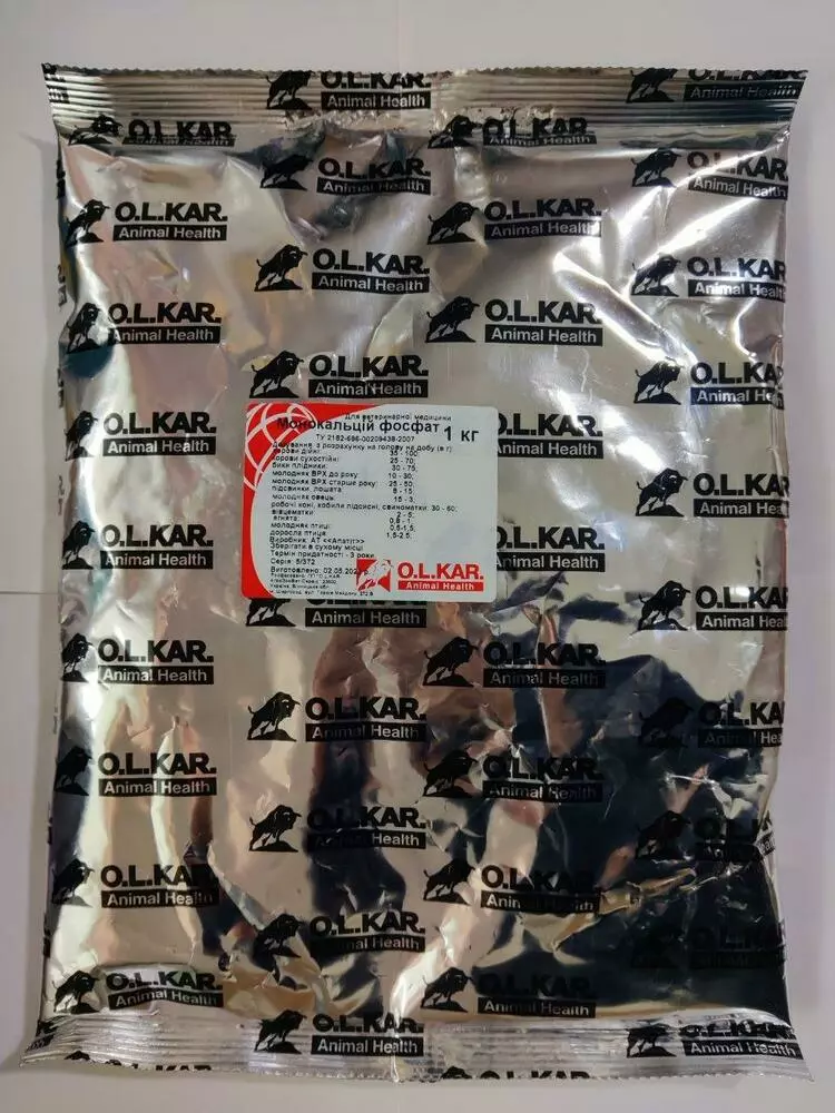 Монокальційфосфат - кормовий монокальційфосфат є незамінним джерелом фосфору і кальцію для сільськогосподарських тварин на всіх стадіях розвитку. Для жуйних це найефективніша фосфорна добавка. Її включають в концентратні суміші (не комбікорм) або присмачують нею силос жом, подрібнені коренеплоди. Вводитися в раціон поступово протягом 5 - 10 діб.