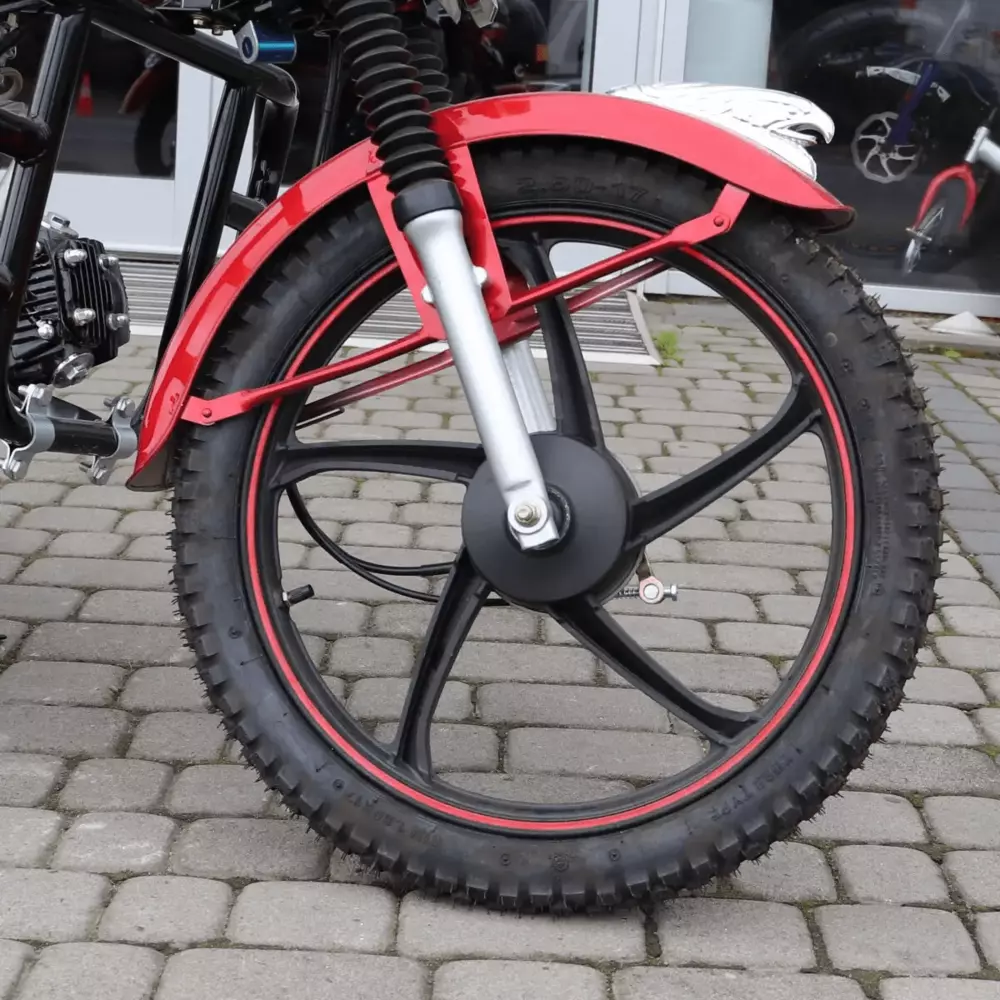 • Шини: передня шина 2.75-17, задня шина 3.00-17