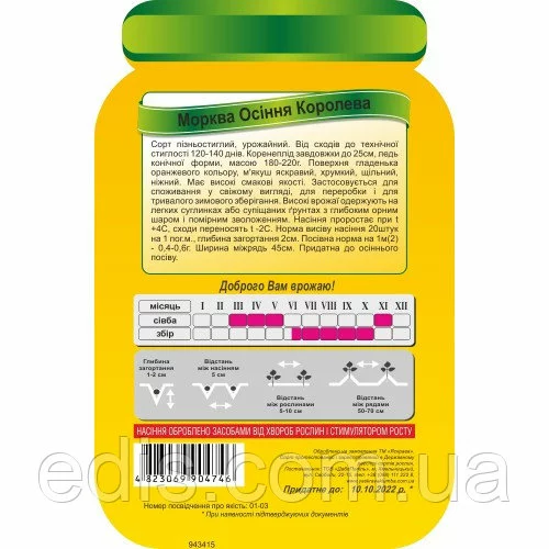 Насіння овочів в оболонці (дражовані): Морква Королева осені 2 г