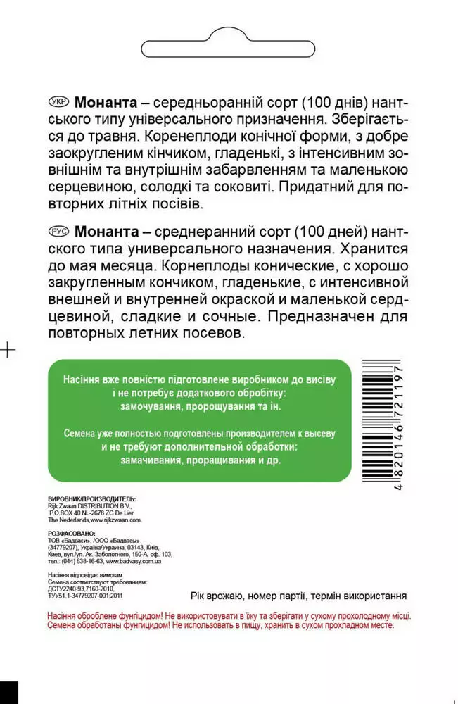 Морква Монанта, 2 г, Садиба Центр
