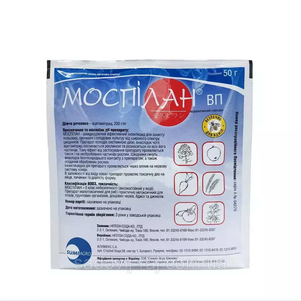 Моспілан характеризується гарною системною дією, внаслідок чого він поглинається рослиною й поширюється судинною системою по всіх її частинах. Шкідники гинуть унаслідок безпосереднього контакту з препаратом, а також унаслідок живлення на оброблених рослинах.