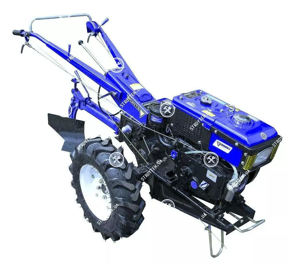 Мотоблок дизельный Forte МД-101GT, без плуга (синий) Мотоблок от компании Forte - это высококачественное, первоклассное а также универсальное средство на базе одного шасси. Сельскохозяйственный агрегат предназначен для обработки земли. Он с легкостью может не только вскопать грунт, но и стать полезным при бороновании, окучивании, посеве или сборе урожая, перевозке тяжелых тюков с цементом, мешков с зерном или удобрением. Мощная модель МД-101 обладает дизельным типом питания, мощностью 10 л.с. (7,4 кВт), а также четырехтактным двигателем, объемом 573 см3 и оборотностью 2300 в минуту. Водяное охлаждение обеспечит долговременное пользование, обезопасит от перегревов, неожиданных поломок. Трансмиссия - редуктор, привод - ременной. Объем топливного бака - 6 л, масляного - 1,65 л. Расхода топлива - 0,8 л/час. Маневренный мотоблок имеет простое ручное управление, а также 6 передних и 2 задние передачи. Ширина культивации - 900 мм, глубина - 195 см. Габариты техники - 218 х 84 х 131 см, вес - 240 кг.