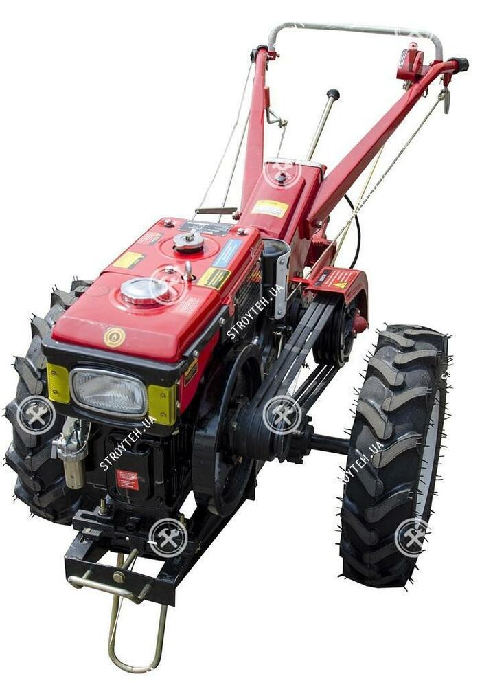 В модели использованы колеса увеличенного диаметра с агрессивным протекторным рисунком для хорошего сцепления с почвой. Руль имеет возможность регулироваться по высоте (под любой рост оператора) и углу наклона. Большая галогенная фара решает вопрос с работой и передвижением в темное время суток. Особенности технического оснащения: Мощный четырехтактный дизельный двигатель с системой водяного охлаждения. Активная почвофреза, ширина обработки 1.2 метра. Большой выбор пониженных и повышенных передач. Галогенная фара для работы и передвижения в темное время суток. Блокировка дифференциала, делает мотоблок выносливым и высокопроходимым. Три приводных ремня. Трехручейковый шкив.