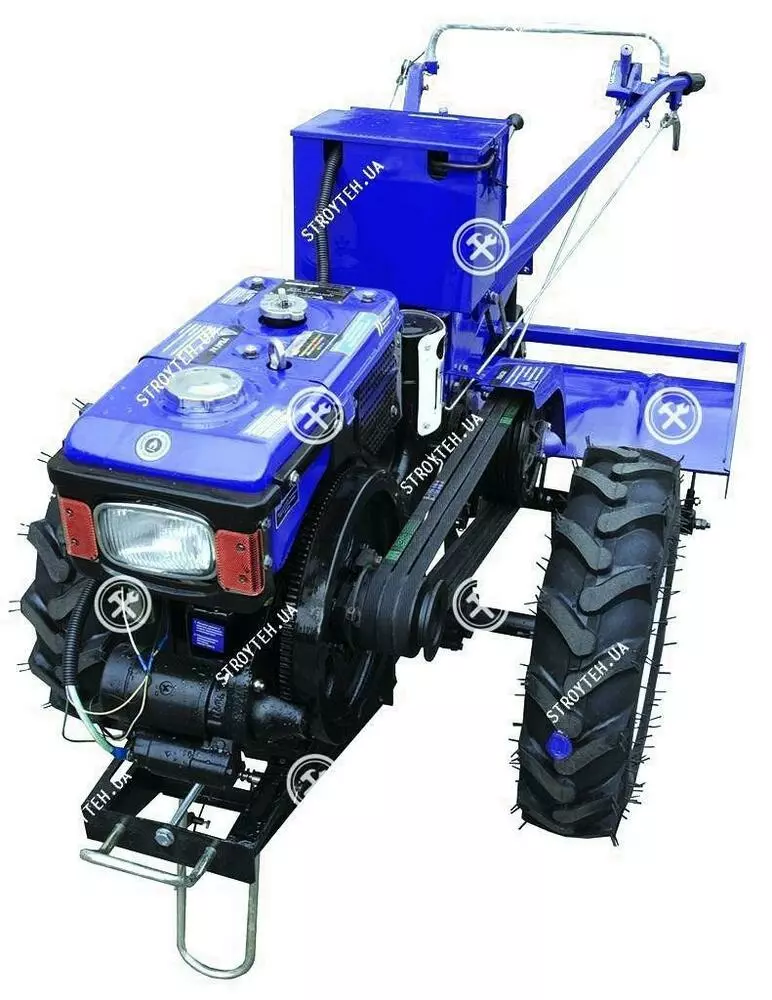 Мотоблок дизельный Forte МД-81ЕGT, без плуга (синий) Forte МД-81ЕGT - высококачественный и надежный мотоблок от известного бренда Forte, который обладает отличными характеристиками и гарантией до 1 года. Выполнить агротехнические манипуляции с ним - проще простого. Его мощность составляет 5660 Вт (8 л.с), благодаря которой он с легкостью справится с различными задачами, вспашет любой структуры грунт. Модель четырехтактного двигателя - 180N, его объем - 452 см3, количество оборотов в минуту 2200. Мощный сельскохозяйственный агрегат работает на дизельном топливе, объемом 5 л и расходом 0.7 л/час. Водяное охлаждение, которым оснащен агрегат, предотвратит его перегрев. Управлять маневренной машиной довольно просто. В этом вам помогут 6 передач вперед и 2 назад и ручной электрический тип старта. Большим плюсом является трансмиссия - шестеренчатый редуктор с конической передачей, а также ременное сцепление. Довольно большие колеса обеспечат хорошую проходимость где угодно. Глубина культивации составляет 195 мм, а ширина 900 мм. Вес мотоблока - 210 кг, размер - 2180х840х1250 мм.