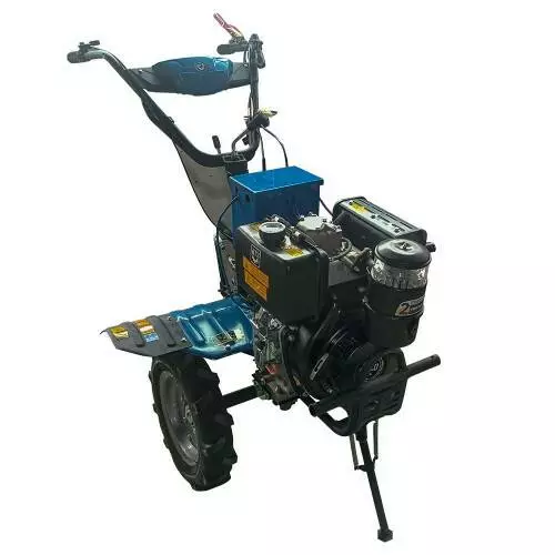 Дизельний мотоблок ДТЗ 510ДНЕ-К оснащений 10-сильним двигуном і електростартером, що значно полегшує запуск навіть у холодну пору року. Прямий шестеренчатий привід та потужна КПП нового типу забезпечують надійну передачу потужності без втрат. Високоефективний повітряний фільтр з циклоном підвищує захист двигуна.