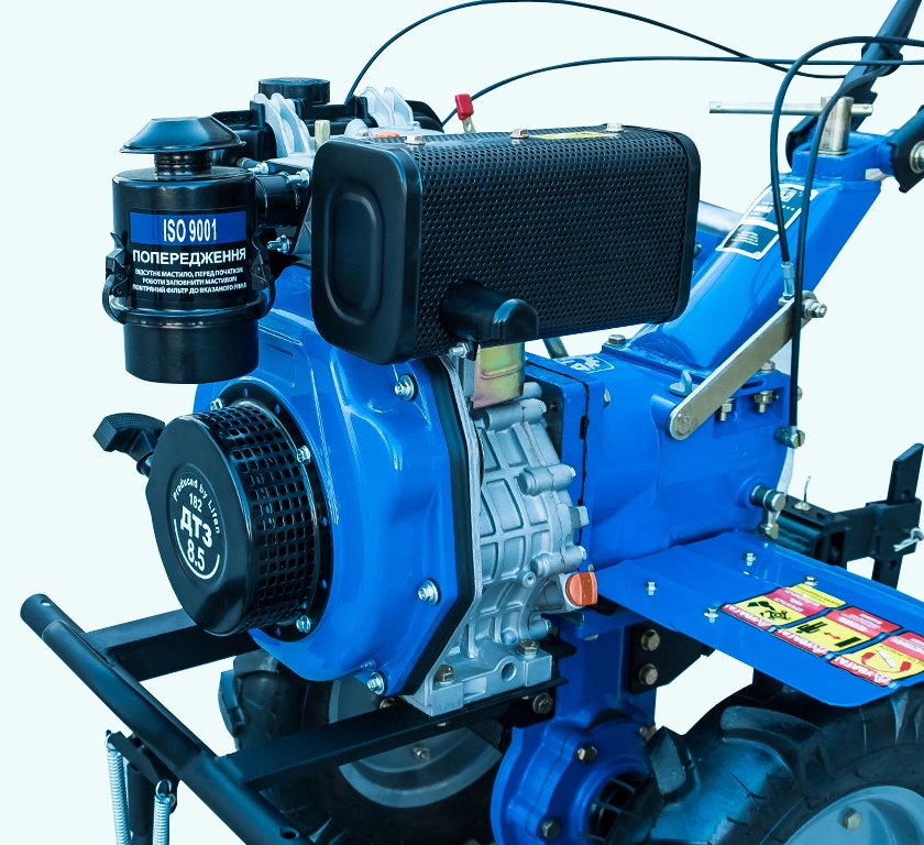 Мотоблок ДТЗ 585Д - это дизельный мотоблок, мощностью 8,5 л.с. с воздушным охлаждением.