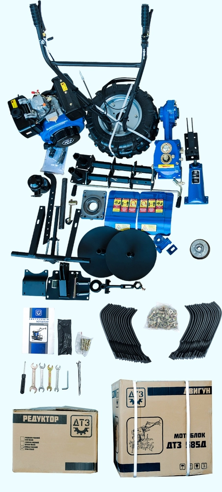 Комплектация Колеса 4х10, Фреза, диски защиты растений, инструкция