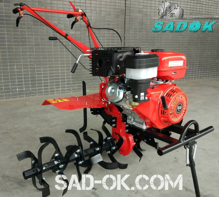 На мотоблок установлен четырехтактный одноцилиндровый бензиновый двигатель высокой мощности 17 л.с. Он имеет повышенный рабочий ресурс и обеспечивает высокую производительность работы агрегата. Мотор отлично справляется с большими нагрузками, так как приспособлен к работе в режиме интенсивной эксплуатации в любых погодных условиях. Также он оборудован автоматическим регулятором частоты вращения. Залогом исправности и стабильной работы всех элементов двигателя становится система воздушного охлаждения, которая не допускает перегрева мотора и его преждевременного износа.