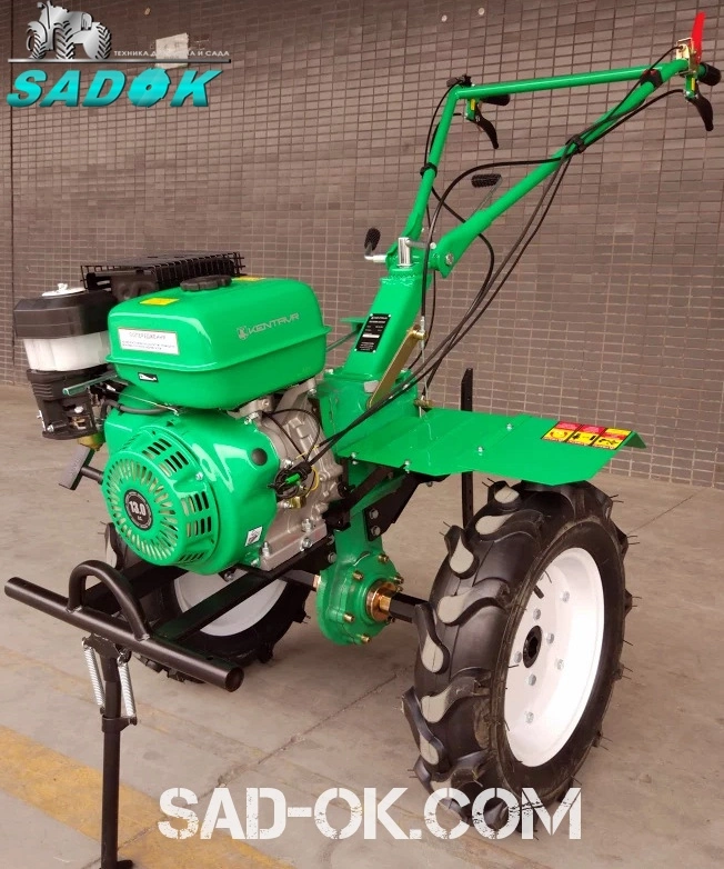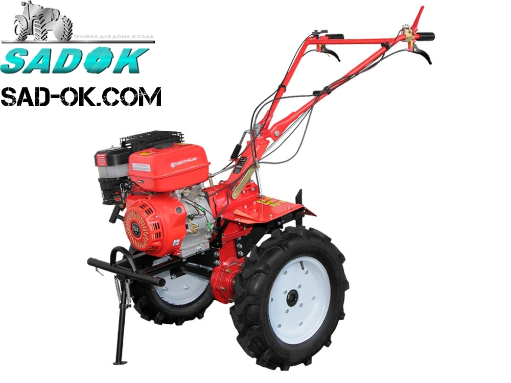 Кентавр МБ 2017Б-4. Это отличный агрегат, который готов к значительным нагрузкам и продолжительному сроку службы. Это новинка на Украинском рынке, которая является отличным ценовым решением. В основе лежит бензиновый четырехтактный двигатель с мощностью в 17 л.с. Такая мощность выбрана не зря. Теперь по плечу даже тяжелая навеска. В комплекте поставляется разборная фреза, которая монтируется на место колес. При применении последних единица превращается в отличный транспортер. Запуск ручной, но осуществляется достаточно просто, т. к. транзисторное зажигание отлично справляется со своими задачами. Другие элементы управления вынесены на руль, поэтому за ними не приходится тянуться. Держатели регулируются по высоте, чтобы подобрать наилучшие параметры под конкретный рост владельца. Фильтр с масляной ванной предотвращает проникновение внутрь различных твердых включений, которые могли бы нанести вред поршневой. Отличная проходимость во влажном грунте обусловлена возможностью выбора одной из двух скоростей вперед и одной назад.