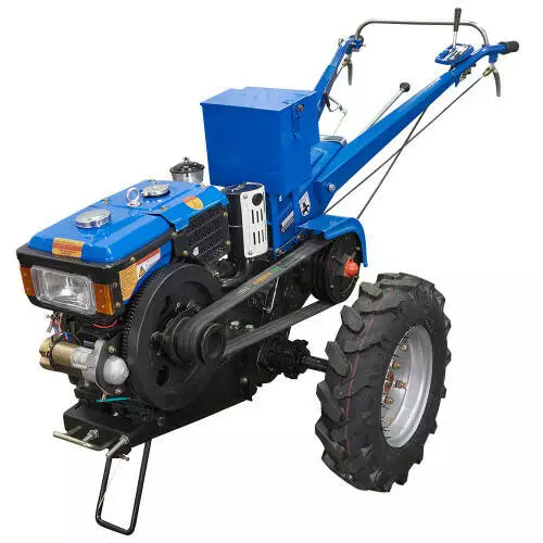 - Оснащений дизельним двигуном потужністю від 8 до 12 к. с., що забезпечує ефективну роботу навіть на важких ґрунтах.