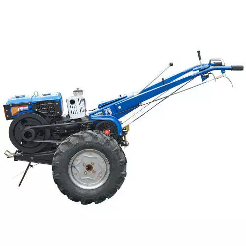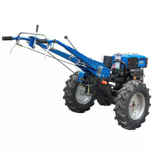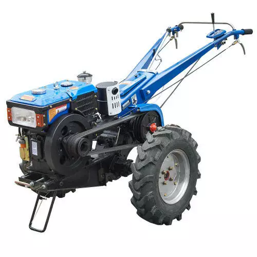 - Оснащений дизельним двигуном потужністю 12 к. с., який забезпечує ефективну роботу навіть з важкими інструментами та обладнанням.