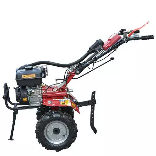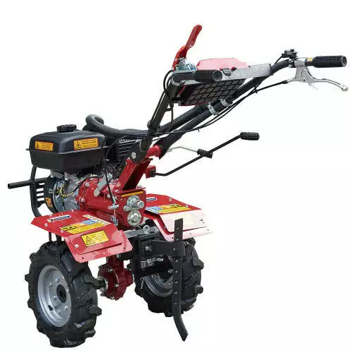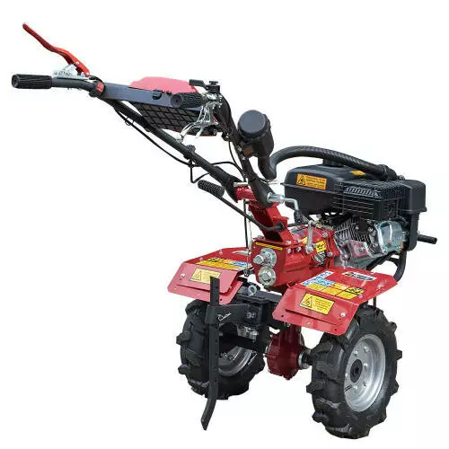 - Має шестерневу коробку передач з заднім ходом, що дозволяє зручно маневрувати й керувати мотоблоком навіть на вузьких або нерівних ділянках.