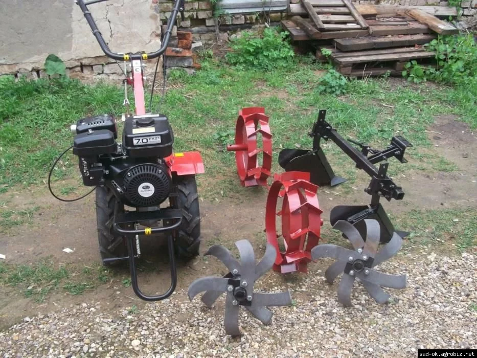 Разные комплектаци, с колесами, фрезами и защитными дисками. В наличии навесное оборудование, прицепы.