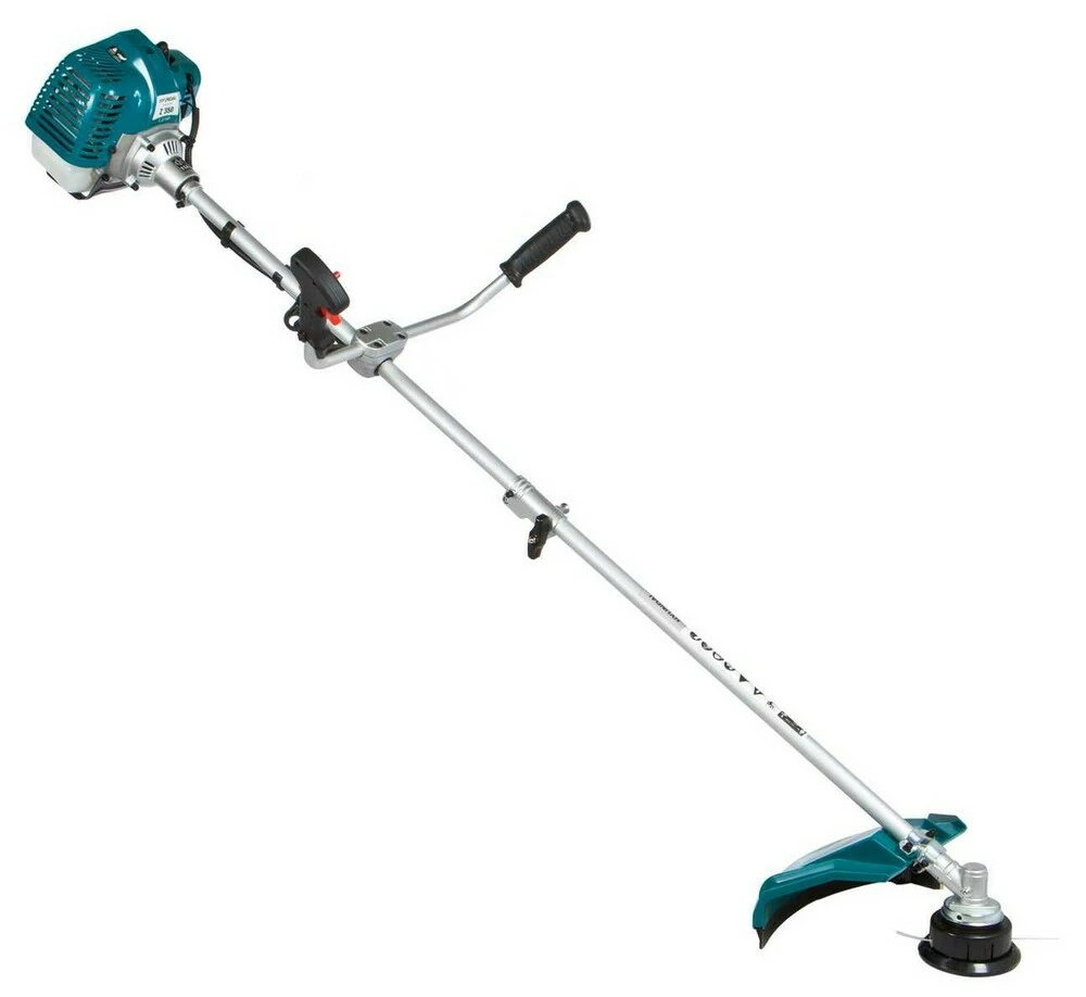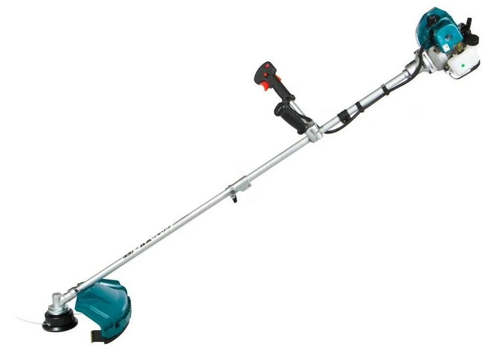 ОписВ якості ріжучого елементу можна використовувати волосінь або ніж. Коса оснащена надійним двигуном, системою легкого запуску Easy start, системою гасіння вібрації, велосипедною рукояткою, редуктором зі зниженим рівнем шуму. Розбірний вал дозволяє компактно скласти інструмент для його зберігання. Захисний кожух забезпечить безпеку оператора під час роботи. Наявність наплечного ременя сприяє розподілу навантаження між руками і спиною користувача.Особливості:Редуктор зі зниженим рівнем шуму;Спрощена система запуску, поршень з двома кільцями;Напівавтоматична подача волосіні;Велосипедна рукоятка;Ранцевий ремінь через плече;
