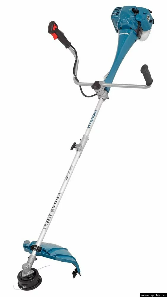 Функция быстрой смены режущей гарнитуры позволяет за несколько секунд заменить триммерную систему на трехлопастный нож, который входит в комплект поставки. Металлический нож мотокосы Хюндай и мощный двигатель позволяет резать даже укоренившийся молодняк деревьев и крупные бурьяны. Полуавтоматическая косильная головка без остановки двигателя позволяет выдвинуть леску на необходимую длину. Пластиковый защитный кожух режущей части агрегата защищает ноги оператора и корректирует необходимую длину лески.
