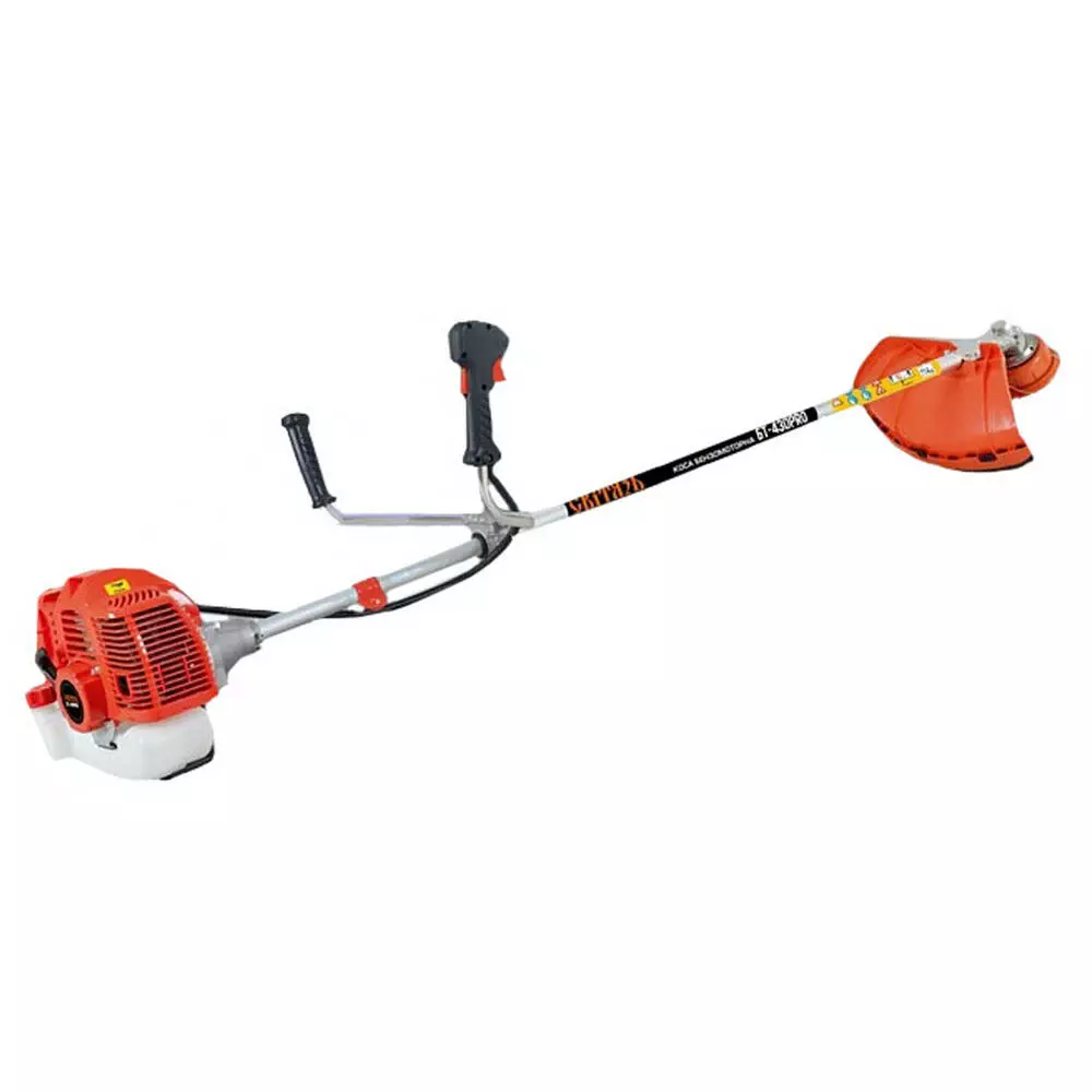 Опис Мотокоса БТ-430 PRO Світязь Бензинова мотокоса Світязь БТ-430 PRO - гарний варіант недорогий, надійної мотокоси. Така модель зможе послужити вам для прибирання присадибних ділянок, а також для великих обсягів роботи: заготівля сіна, боротьба з бур'янами, косіння великих територій. В інструменті використовують два види скошування: спеціальний ніж-фреза (з нею можна з легкістю справлятися навіть із чагарниками) або волосінь. Бензокоса має велику потужність мотора (3600Вт), високі обороти холостого ходу, мала вага (7,8 кг) та збалансовану конструкцію. Всі ці фактори забезпечують легкість в управлінні та високу продуктивність. Розробники подумали і про ваш комфорт, тому мотокоса забезпечується зручною ергономічною ручкою велосипедного типу, низьким рівнем вібрацій та шуму. В обслуговуванні інструмент невибагливий. Серед інших достоїнств моделі БТ-430 PRO можна відзначити високого рівня якість комплектуючих деталей, якісну заводську збірку, праймер підкачки та повну комплектацію.