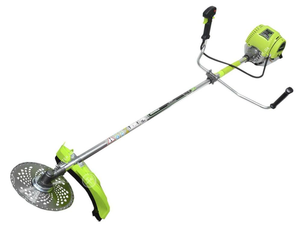 Мотокоса Grunhelm GR-31T Бензиновая мотокоса Grunhelm GR-31T хороший недорогой вариант надежной мотокосы, что прослужит вам не один год. Такую модель часто используют для уборки приусадебных участков больших объемов: заготовка сена, борьба с сорняками, кошение обширных территорий. Такая техника имеет широкий спектр применения, благодаря возможности использовать в качестве режущей системы леску или нож. Ширина прокоса при работе с кордом составляет 440 мм, с ножом 254 мм. Для вашего комфорта продумана эргономичная ручка велосипедного типа, ремень с возможностью регулировки. В обслуживании инструмент неприхотлив. Среди прочих достоинств модели GR-31T нельзя не отметить высокого уровня качество комплектующих деталей, качественную заводскую сборку, праймер подкачки и полную комплектацию.