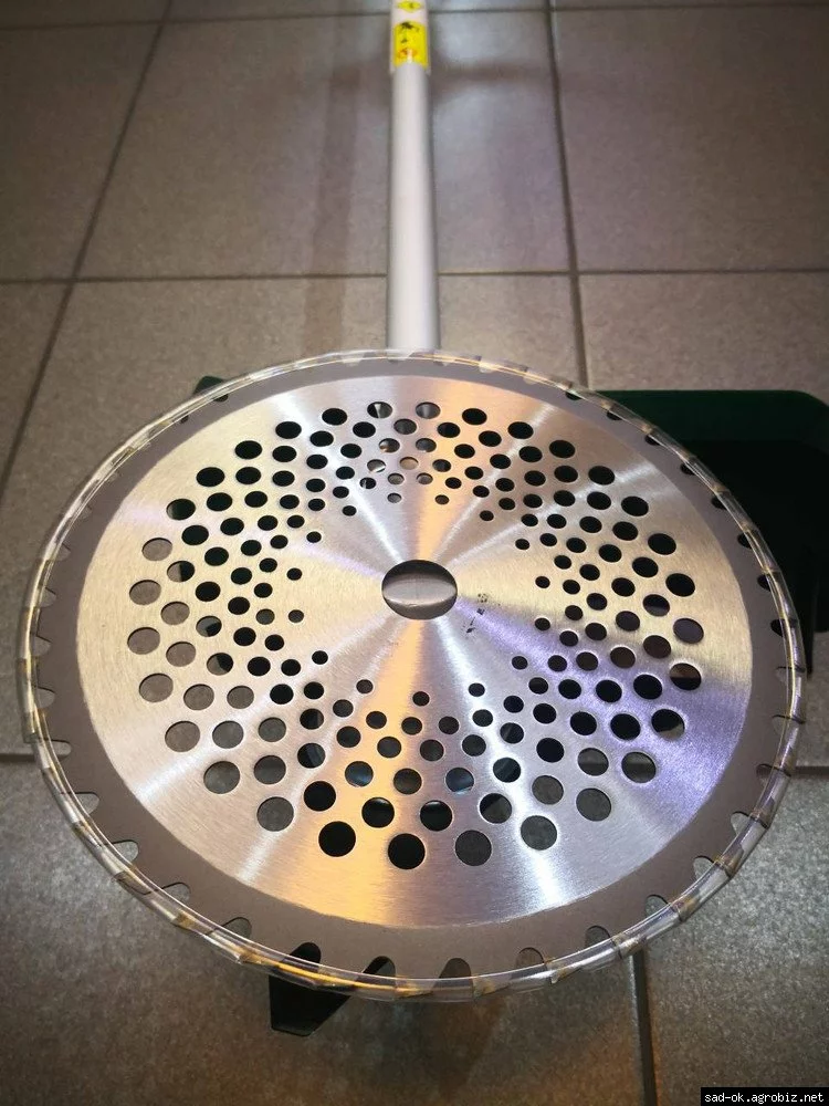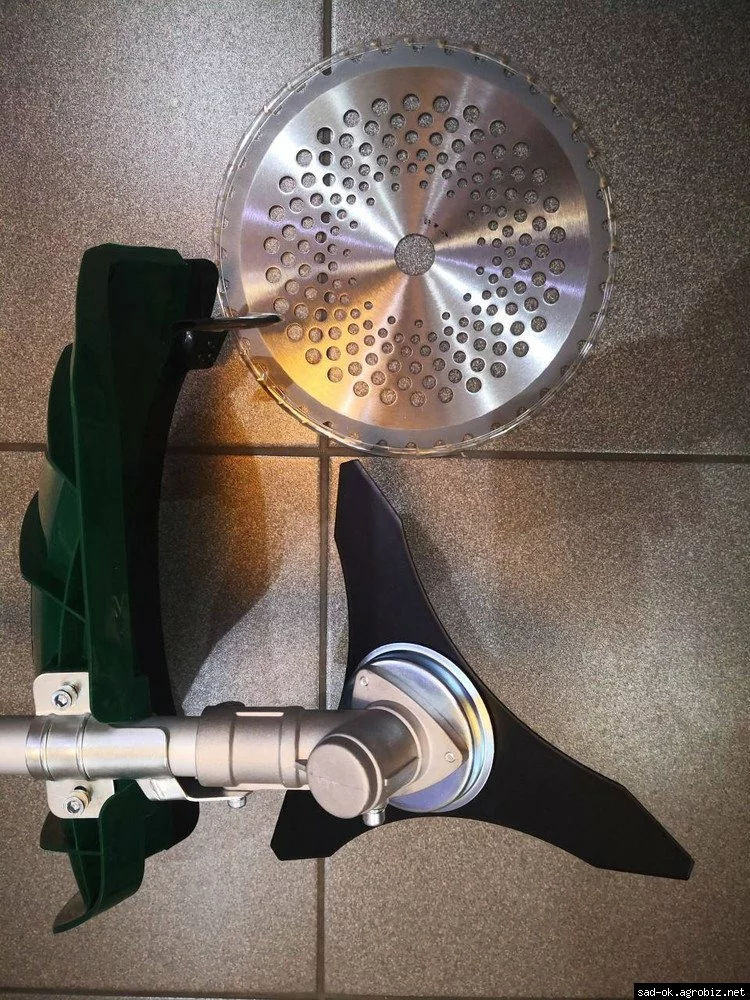В комплекте: косильная головка , нож 3-х зубый, диск 40 зубый с твердосплавными напайками, профессиональный двойной наплечный ремень.
