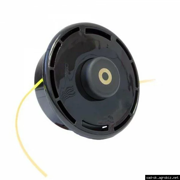 режущие инструменты – диск на 8 ножей и катушка с леской. Леска косит траву, а диск – срезает ровным слоем. Скорость вращения диска – 10 тыс. оборотов в минуту. С такой высокой скоростью леска просто крошит стебли растений, которые падают на газон.  Леска используется, если на участке сложный рельеф, есть камни, бордюры и заборы, которые близко подходят к скашиваемому участку.