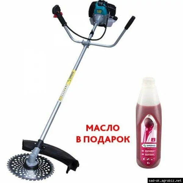 новая комплектация: очки, наушники, леска квадратного сечения, облегчённый нож на 8 зубов, перфорированный нож на 40 зубов с победитовыми напайками, ремни на 2 плеча, боковая защита на бедро, канистра для смешивания топлива, ключи для сборки и разборки.