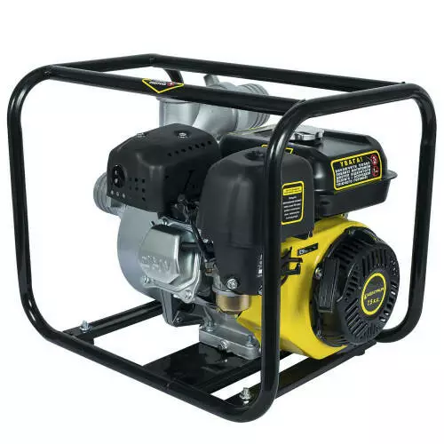 - Мотопомпа складається з двох основних вузлів - потужного бензинового двигуна об'ємом 212 см³ з потужністю 7,5 к.с. та водяного насоса в алюмінієвому корпусі.